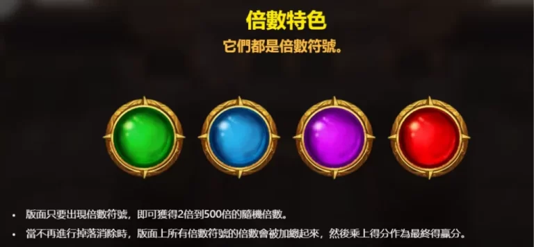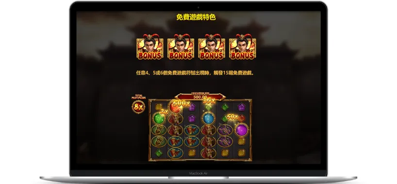 • 獎金方式 : 免費旋轉、倍數加乘、消除掉落